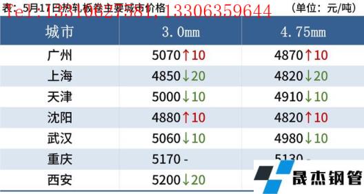 熱軋板卷:5月17日,全國(guó)24個(gè)主要城市4.75mm熱軋板卷均價(jià)5013元/噸,較上個(gè)交易日持平。現(xiàn)貨市場(chǎng)基本處于觀望狀態(tài),不急于拿貨,市場(chǎng)整體成交情況較弱,盤(pán)面全日震蕩運(yùn)行,午后部分市場(chǎng)有小幅下跌。供需角度來(lái)看,近期熱卷供應(yīng)已經(jīng)基本恢復(fù)正常,需求方面受盤(pán)面觸底反彈影響,部分投機(jī)商戶小批量備貨,但終端需求依然不佳,雖然前期部分延遲需求逐步釋放,但同比依然處于低位。綜合來(lái)看,預(yù)計(jì)近期全國(guó)熱軋板卷價(jià)格弱勢(shì)震蕩運(yùn)行為主。