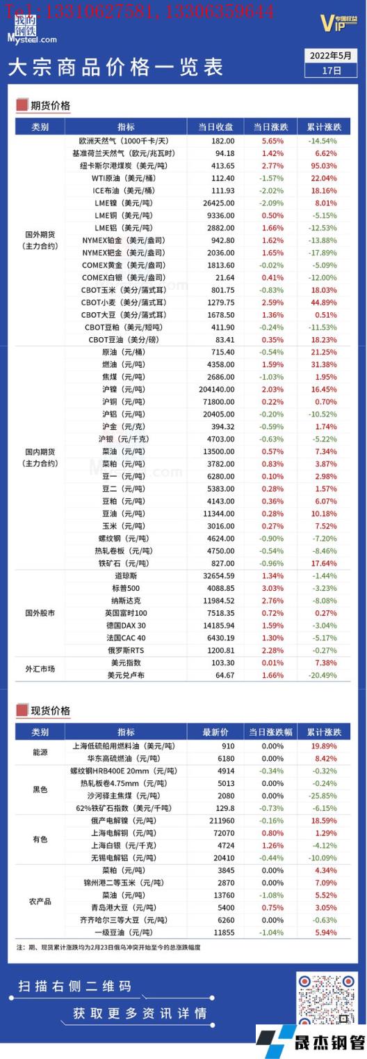 免責聲明:本網站(山東聊城晟杰無縫鋼管廠m.www-86604.com)刊載的“俄烏局勢丨大宗商品價格一覽表(5月17日)”等均源于網絡,版權歸原作者所有,且僅代表原作者觀點,本文所載信息僅供參考。轉載僅為學習與交流之目的,如無意中侵犯您的合法權益,請及時聯系刪除。本網站刊登此篇文章并不意味著本站贊同其觀點或證實其內容的真實性,我們不對其科學性、嚴肅性等作任何形式的保證。如果侵犯了您的版權,請盡快聯系我們予以撤銷,謝謝合作!