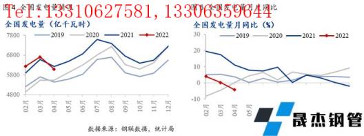 2022年4月份,全國生產原煤同比增長10.7%。4月我國進口煤同比增長8.4。4月我國用電同比增速回落1.3%,主要是受第二、三產業用電量同比下滑拖累,發電量同比下降4.3%。2022年4月以來(截至4月27日),全國平均氣溫為12.4℃,較常年同期偏高1.3℃,為1961年以來同期第三高;全國平均降水量36.4毫米,較常年同期偏少6.1%。