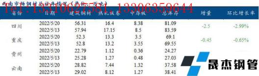 據調研,截止2022年5月20日,西南市場厚壁無縫鋼管累計社會庫存為212.04萬噸,環比減少6.54萬噸,降幅2.99%。分省份來看,本周四川市場厚壁無縫鋼管庫存為81.09萬噸,環比減少2.5萬噸,降幅2.99%;重慶市場厚壁無縫鋼管庫存為69.1萬噸,環比減少0.45萬噸,降幅0.65%;貴州市場厚壁無縫鋼管庫存為24.27萬噸,環比減少2.76萬噸,降幅10.21%;云南市場厚壁無縫鋼管庫存為37.58萬噸,環比減少0.83萬噸,降幅2.16%。