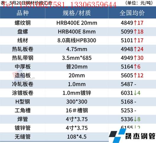 5月20日,國內(nèi)厚壁無縫鋼管市場上漲為主,唐山鋼坯出廠價(jià)格漲20報(bào)4510元/噸。近期國內(nèi)疫情逐漸得到控制,下游消費(fèi)有所好轉(zhuǎn),市場交投氛圍濃郁,全天成交明顯好于前一交易日。