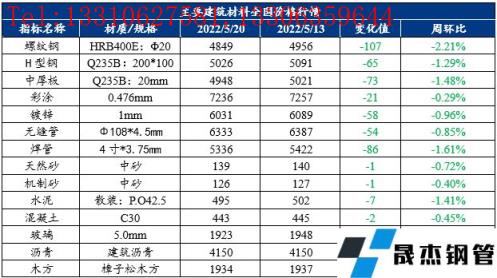 免責聲明:本網站(山東聊城晟杰無縫鋼管廠m.www-86604.com)刊載的“建筑原材料周報(5.16-5.20)”等均源于網絡,版權歸原作者所有,且僅代表原作者觀點,本文所載信息僅供參考。轉載僅為學習與交流之目的,如無意中侵犯您的合法權益,請及時聯系刪除。本網站刊登此篇文章并不意味著本站贊同其觀點或證實其內容的真實性,我們不對其科學性、嚴肅性等作任何形式的保證。如果侵犯了您的版權,請盡快聯系我們予以撤銷,謝謝合作!