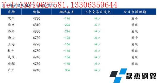 現(xiàn)貨市場動態(tài):23日,全國31個主要城市20mm三級抗震螺紋鋼均價4839元/噸,較上個交易日跌10元/噸;上海螺紋鋼美元計(jì)價指數(shù)收于729.78,跌0.08%。具體來看,昨日早盤期螺震蕩運(yùn)行,部分地區(qū)市場報(bào)價小幅上漲,盤中期螺轉(zhuǎn)弱,成交轉(zhuǎn)弱,市場情緒較為悲觀,商家多以暗降出貨。午后期螺繼續(xù)走弱,現(xiàn)貨價格進(jìn)一步走低,全天成交表現(xiàn)清淡。預(yù)計(jì)今日國內(nèi)建筑厚壁無縫鋼管市場偏弱運(yùn)行。