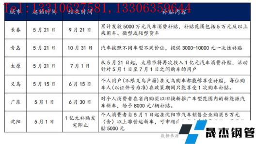 隨之,在5月份,全國多地都推出了因地制宜的購車優(yōu)惠政策,包括汽車消費(fèi)補(bǔ)貼、增加購車指標(biāo)、汽車消費(fèi)券等。這也進(jìn)一步幫助消費(fèi)者增強(qiáng)了汽車購買能力,拉動(dòng)市場消費(fèi),從而推動(dòng)動(dòng)汽車產(chǎn)業(yè)和零部件供應(yīng)企業(yè)的快速復(fù)蘇。筆者再此做了部分城市補(bǔ)貼政策的整理。