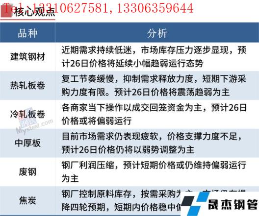 建筑厚壁無縫鋼管:5月25日,全國31個主要城市20mm三級抗震螺紋鋼均價4766元/噸,較上個交易日跌32元/噸。早盤市場成交弱勢不改,終端觀望情緒濃厚,盤中價格繼續松動。午后隨著期螺超跌反彈,現貨價格止跌企穩。短期來看,近期需求持續低迷,市場庫存壓力逐步顯現,預計26日國內建筑厚壁無縫鋼管現貨價格將延續小幅趨弱運行態勢。