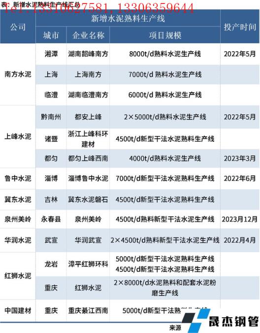 免責聲明:本網站(山東聊城晟杰無縫鋼管廠m.www-86604.com)刊載的“:5月新增11條熟料水泥生產線,紅獅產能最大”等均源于網絡,版權歸原作者所有,且僅代表原作者觀點,本文所載信息僅供參考。轉載僅為學習與交流之目的,如無意中侵犯您的合法權益,請及時聯系刪除。本網站刊登此篇文章并不意味著本站贊同其觀點或證實其內容的真實性,我們不對其科學性、嚴肅性等作任何形式的保證。如果侵犯了您的版權,請盡快聯系我們予以撤銷,謝謝合作!