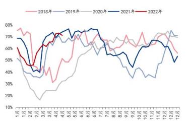 結(jié)合相應(yīng)的產(chǎn)能利用率來看,截止至2022年4月底,湖北省螺紋鋼產(chǎn)能利用率約在71.22%,高于近5年的每年平均水平,且從走勢圖上看,基本處于歷年產(chǎn)能釋放值的高位運(yùn)行;而線盤產(chǎn)能利用率約在67.54%,尚且低于平均值水平,從走勢圖上看,并未達(dá)到峰值水平在釋放。由此看來,隨著新增產(chǎn)能的釋放,若產(chǎn)能利用率維持在相對(duì)高位運(yùn)行,將一定程度上在供應(yīng)方面做了疊加效應(yīng)。當(dāng)然,供應(yīng)能力的單方面增加并未能說明價(jià)格一定會(huì)出現(xiàn)偏低運(yùn)行的表現(xiàn),因此需結(jié)合需求的表現(xiàn)來驗(yàn)證一下。