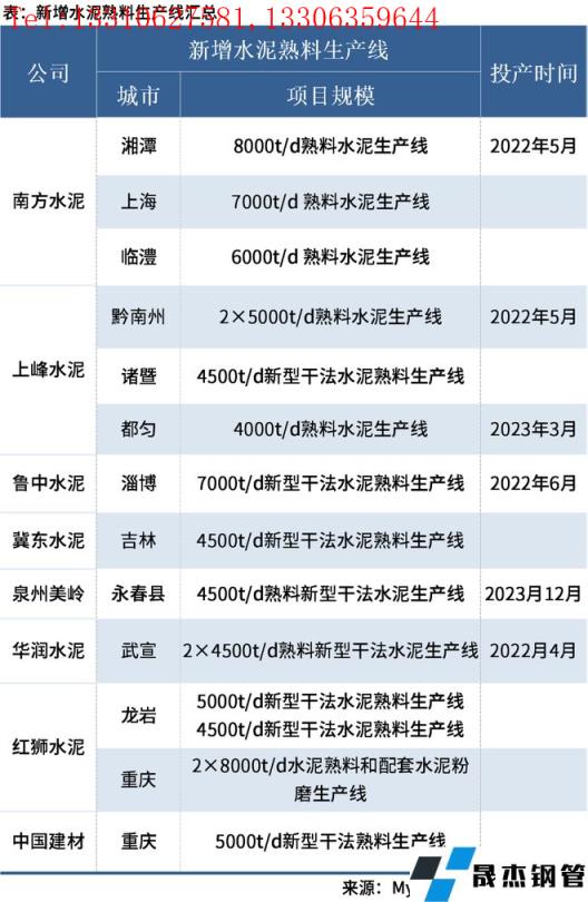 免責聲明:本網站(山東聊城晟杰無縫鋼管廠m.www-86604.com)刊載的“5月新增13條熟料水泥生產線,紅獅產能最大”等均源于網絡,版權歸原作者所有,且僅代表原作者觀點,本文所載信息僅供參考。轉載僅為學習與交流之目的,如無意中侵犯您的合法權益,請及時聯系刪除。本網站刊登此篇文章并不意味著本站贊同其觀點或證實其內容的真實性,我們不對其科學性、嚴肅性等作任何形式的保證。如果侵犯了您的版權,請盡快聯系我們予以撤銷,謝謝合作!