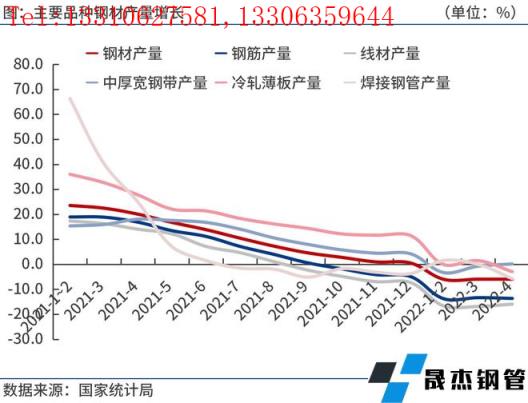 2022年4月份,鋼筋、線材、中厚寬鋼帶等日均產(chǎn)量為68.5萬噸、41.5萬噸、55.2萬噸,分別較上月增加2.7萬噸、1.6萬噸和2.6萬噸;冷軋薄板、焊接厚壁鋼管等日均產(chǎn)量11.5萬噸和16.0萬噸,分別較上月減少2.8萬噸和0.8萬噸。由于國內(nèi)疫情反復,預計5月上半月主要品種厚壁無縫鋼管日均產(chǎn)量高位運行,下半月建筑厚壁無縫鋼管生產(chǎn)企業(yè)因虧損減產(chǎn)。