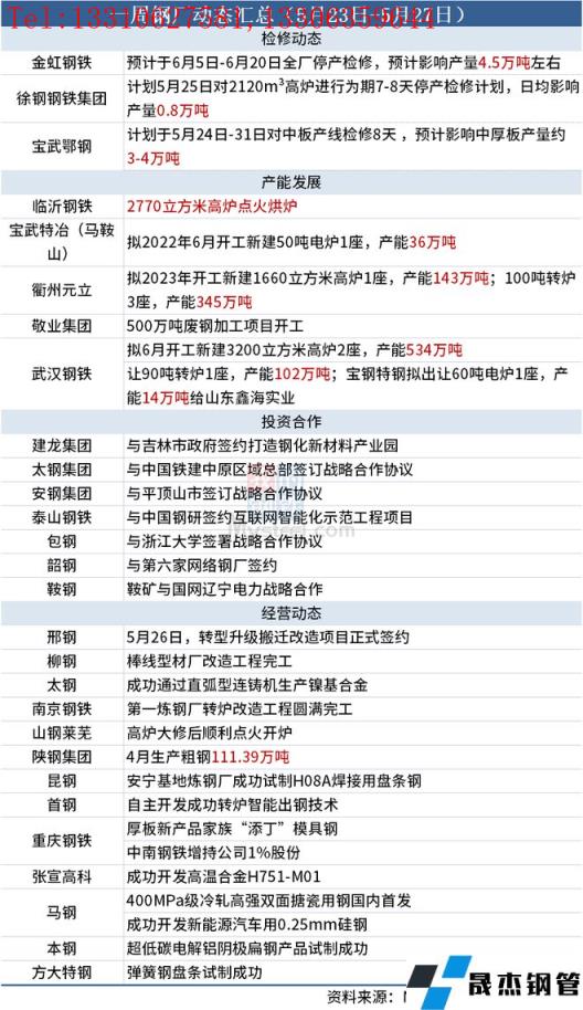 據不完全統計,本周(5月23日-5月27日)有3家無縫厚壁鋼管廠家發布檢修計劃,具體如下: