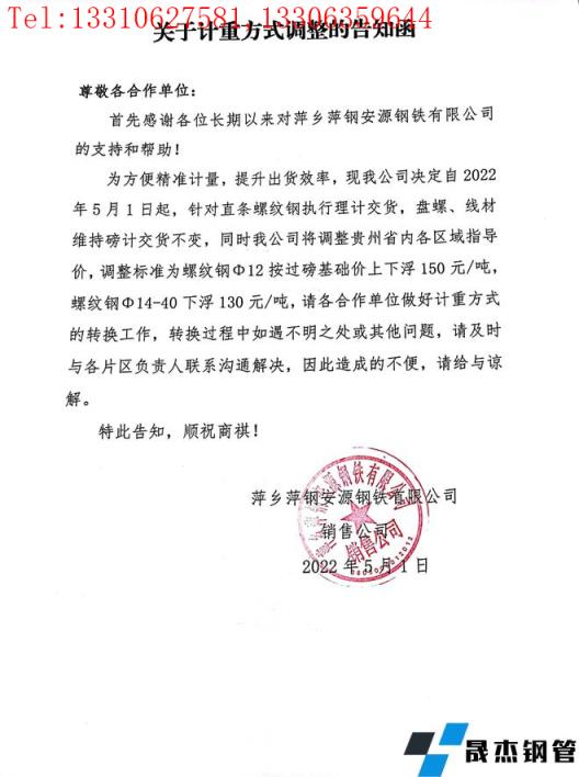 免責聲明:本網站(山東聊城晟杰無縫鋼管廠m.www-86604.com)刊載的“萍鄉萍鋼安源鋼鐵有限公司關于對貴州區域計重方式調整的告知函”等均源于網絡,版權歸原作者所有,且僅代表原作者觀點,本文所載信息僅供參考。轉載僅為學習與交流之目的,如無意中侵犯您的合法權益,請及時聯系刪除。本網站刊登此篇文章并不意味著本站贊同其觀點或證實其內容的真實性,我們不對其科學性、嚴肅性等作任何形式的保證。如果侵犯了您的版權,請盡快聯系我們予以撤銷,謝謝合作!