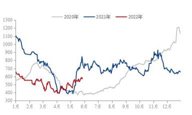 再來看,2022年1-4月我國冷軋板(帶)出口總量共計44.74萬噸,年同比降幅高達86.47%。雖然1-4月份出口數據與同期相比均存在較大差異,但環(huán)比數據卻是在緩慢增長。4月冷軋出口價格窄幅下跌,月環(huán)比跌31美元/噸。從市場反饋看4月下旬受國內價格震蕩下行,以及國外需求下降,出口報價下跌,出口價格在931美元/噸左右。從調研的情況看,近期國內冷軋出口價格一般,國外市場需求略有放緩,內外價差利潤尚可,國內出口貿易環(huán)節(jié)積極性一般,預計5月冷軋出口價1000美元/噸以內。從預期數據來看,國外需求緩慢恢復,預計5月出口環(huán)比或繼續(xù)大幅增加。