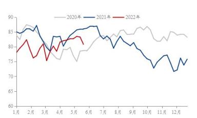 首先,供給端方面,據調研顯示,截至2022年5月27日,37家熱軋板卷生產企業(yè)中,無縫厚壁鋼管廠家產能利用率為80.87%,能夠從圖2可以觀察到2022年1-5月份,熱軋產能利用率是低于2021年同期水平,因此無縫厚壁鋼管廠家熱軋產量給到市場的供給壓力是在持續(xù)減弱,對于熱軋價格起到了一定的支撐作用。再來看下無縫厚壁鋼管廠家的冷軋產能利用率, 2020年與2021年冷軋產能利用率均值分別為77.96%與81.05%。截至2022年5月27日,29家冷軋板卷生產企業(yè)中,冷軋產能利用率為83.04%,從年同比數據對比之下,能夠反映出冷軋產能利用率已經達到相對飽和狀態(tài)。
