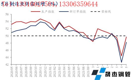 二、5月制造業(yè)PMI指數(shù)呈供需雙增的態(tài)勢,需求回升力度大于供給,大體符合前期判斷。4月筆者發(fā)布的文章《4月制造業(yè)PMI指數(shù)低迷,未來厚壁無縫鋼管消費(fèi)何去何從?》中便提到,隨著我國經(jīng)濟(jì)逐步復(fù)蘇,需求復(fù)蘇的彈性將快于供給端。從數(shù)據(jù)來看,5月新訂單指數(shù)大幅回升5.6個(gè)百分點(diǎn)至48.2%,回升幅度高于生產(chǎn)指數(shù)。據(jù)國家統(tǒng)計(jì)局?jǐn)?shù)據(jù),5月專用設(shè)備、汽車等行業(yè)生產(chǎn)指數(shù)較上月大幅上升10個(gè)百分點(diǎn)以上,升至擴(kuò)張區(qū)間;石油煤炭及其他燃料加工、化學(xué)原料及化學(xué)制品、黑色金屬冶煉及壓延加工等行業(yè)新訂單指數(shù)重回?cái)U(kuò)張區(qū)間。