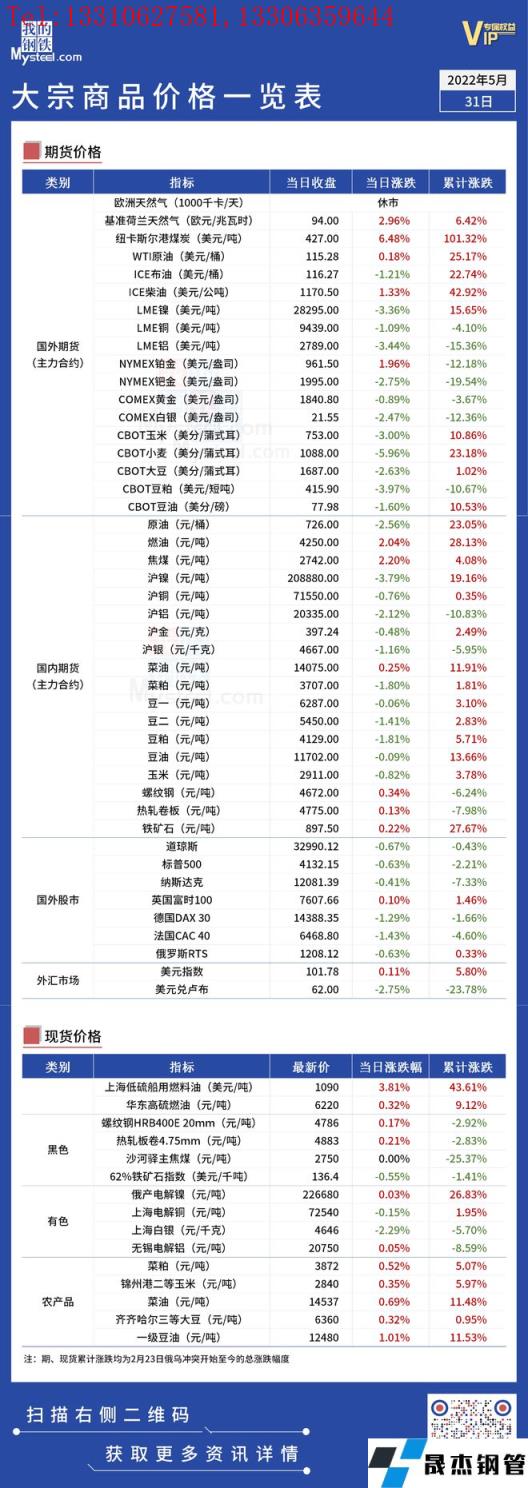 免責聲明:本網站(山東聊城晟杰無縫鋼管廠m.www-86604.com)刊載的“俄烏局勢丨大宗商品價格一覽表(5月31日)”等均源于網絡,版權歸原作者所有,且僅代表原作者觀點,本文所載信息僅供參考。轉載僅為學習與交流之目的,如無意中侵犯您的合法權益,請及時聯系刪除。本網站刊登此篇文章并不意味著本站贊同其觀點或證實其內容的真實性,我們不對其科學性、嚴肅性等作任何形式的保證。如果侵犯了您的版權,請盡快聯系我們予以撤銷,謝謝合作!