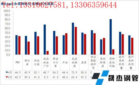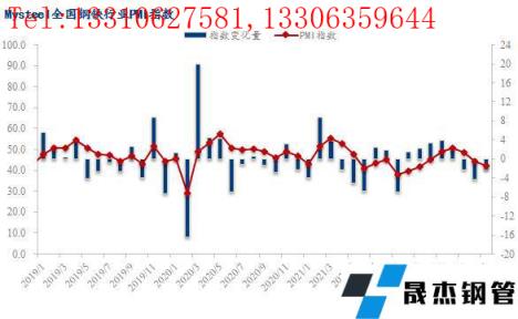 2022年5月份全國鋼鐵行業PMI為42.0%,環比回落2.3個百分點,連續三個月低于榮枯線。分指標來看,本月新訂單、新出口訂單、積壓訂單、出廠價格、原料采購價指數均大幅回落,僅產出、原材料庫存指數小幅回升,但仍處于榮枯線下方,顯示了5月份國內鋼鐵行業呈現供需兩弱的低迷態勢運行。具體來看,5月份國內疫情仍呈多點散發態勢,繼續拖累終端需求釋放,同時宏觀經濟數據顯示投資消費信心不足、國內經濟面臨較大下行壓力,導致市場悲觀情緒蔓延,國內厚壁無縫鋼管價格持續下行,無縫厚壁鋼管廠家生產盈利快速收窄,尤其是短流程無縫厚壁鋼管廠家面臨全線虧損,無縫厚壁鋼管廠家供給釋放受到抑制。面對即將到來的6月份,國內鋼價能否止跌企穩,下面筆者從PMI各項指數進行分析解讀。