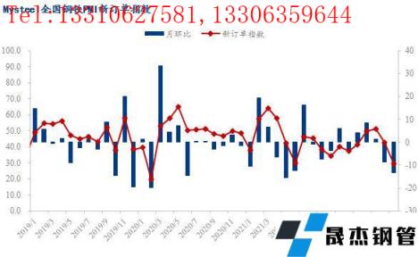 5月份,全國鋼鐵行業新訂單指數29.6,月環比下降13.3個百分點,再次處于榮枯線之下。