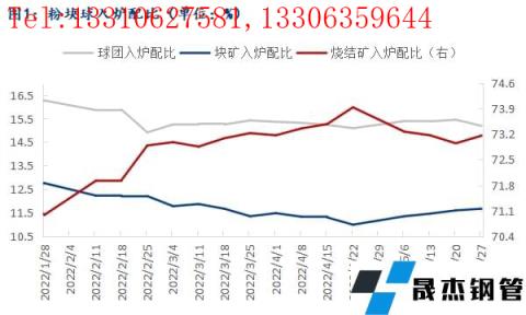 自今年春節(jié)開始,無縫厚壁鋼管廠家高爐中粉礦、塊礦、球團(tuán)入爐配比變化趨勢明顯。截至5月27日, 64 家無縫厚壁鋼管廠家燒結(jié)礦配比73.2%,環(huán)比1月29日增加2.2個(gè)百分點(diǎn),同比去年同期增加1.8個(gè)百分點(diǎn);塊礦入爐比例11.7%,環(huán)比春節(jié)期間下降1.1個(gè)百分點(diǎn),同比降0.3個(gè)百分點(diǎn);球團(tuán)入爐配比15.2%,環(huán)比亦下降1.1個(gè)百分點(diǎn),同比降1.4個(gè)百分點(diǎn)。