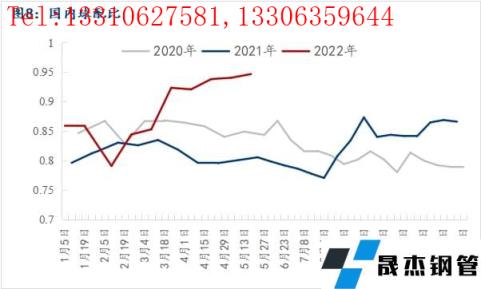 除了粉塊球的比例之外,由于利潤的變化無縫厚壁鋼管廠家也在持續(xù)壓縮廢鋼的使用比例;截至5月27日,核心數(shù)據(jù)中顯示,無縫厚壁鋼管廠家廢鋼的使用比例8.3%,較春節(jié)后下降1.4個(gè)百分點(diǎn),同比去年同期降3.7個(gè)百分點(diǎn),處于近三年的偏低水平。
