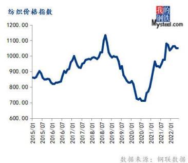 5月份紡織價格指數(shù)為1047.23,環(huán)比下跌0.23%,同比上漲12.03%。