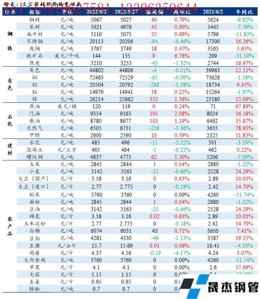 免責聲明:本網站(山東聊城晟杰無縫鋼管廠m.www-86604.com)刊載的“周報:大宗工業原材料、能源及農產品價格周報(5.30-6.02)”等均源于網絡,版權歸原作者所有,且僅代表原作者觀點,本文所載信息僅供參考。轉載僅為學習與交流之目的,如無意中侵犯您的合法權益,請及時聯系刪除。本網站刊登此篇文章并不意味著本站贊同其觀點或證實其內容的真實性,我們不對其科學性、嚴肅性等作任何形式的保證。如果侵犯了您的版權,請盡快聯系我們予以撤銷,謝謝合作!
