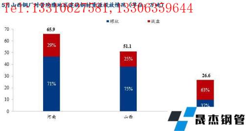 在統計的11家山西無縫厚壁鋼管廠家中,5月份向晉陜豫地區建筑厚壁無縫鋼管資源投放總量為143.6萬噸,其中螺紋94.6萬噸,占比為66%,線盤49萬噸,占比為34%。分區域來看,對山西地區投放51.1萬噸,占比為36%;對河南地區投放65.9萬噸,占比為46%;對陜西地區投放26.6萬噸,占比為19%。據數據顯示,5月份山西無縫厚壁鋼管廠家向晉陜豫地區投放建筑厚壁無縫鋼管資源總量較4月份增加24.27萬噸。分區域來看,5月對山西地區的投放增量最大,主要是山西區域價格持續高于周邊市場,山西省內資源多在省內消化為主。