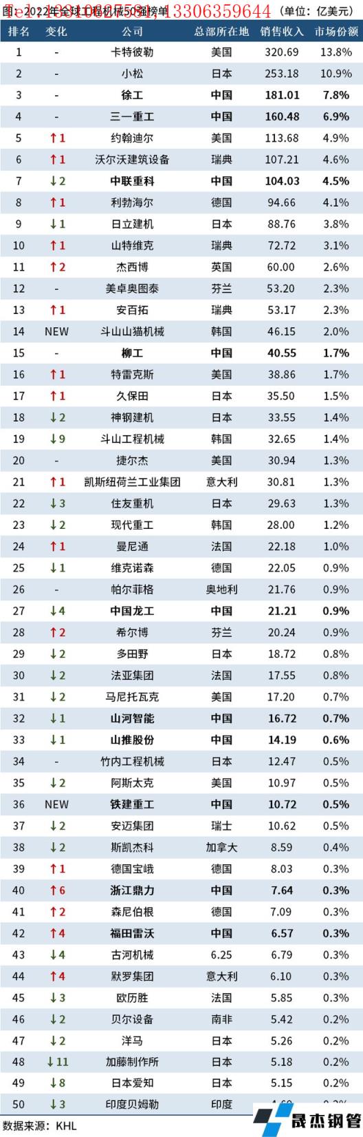 免責聲明:本網(wǎng)站(山東聊城晟杰無縫鋼管廠m.www-86604.com)刊載的“2022全球工程機械50強榜單出爐,企業(yè)銷售額增超20%”等均源于網(wǎng)絡(luò),版權(quán)歸原作者所有,且僅代表原作者觀點,本文所載信息僅供參考。轉(zhuǎn)載僅為學習與交流之目的,如無意中侵犯您的合法權(quán)益,請及時聯(lián)系刪除。本網(wǎng)站刊登此篇文章并不意味著本站贊同其觀點或證實其內(nèi)容的真實性,我們不對其科學性、嚴肅性等作任何形式的保證。如果侵犯了您的版權(quán),請盡快聯(lián)系我們予以撤銷,謝謝合作!