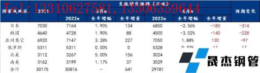 除去印度、歐洲、烏克蘭的生鐵產(chǎn)量變化影響外,其他國家生鐵產(chǎn)量全年預(yù)期調(diào)整為減少394萬噸。