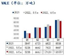 2022年6月、7月份鐵礦石供需缺口將會縮小,到8月份,供應(yīng)缺口得以彌補并向供強需弱的方向轉(zhuǎn)變。因此鐵礦石價格預(yù)計前高后低格局不變,年底前港口累庫預(yù)期不變,但累庫幅度相較于5月預(yù)期會有所縮小。