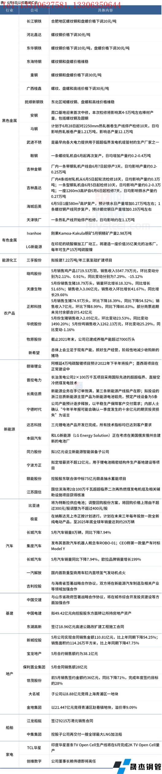 安鋼周口基地迎來首次中修,本次檢修將影響其4-5萬噸左右棒材產量,包括螺紋鋼及圓鋼;馬鋼計劃于6月28日起對2250mm熱軋板卷生產線停產檢修10天,日均影響熱軋板卷產量1.21萬噸,影響總產量12.1萬噸;贛鋒鋰業阿根廷4萬噸碳酸鋰項目預計2022年下半年將投產;贛能股份控股股東聯合體中標75億元贛縣抽水蓄能項目;比亞迪將為特斯拉供應電池。