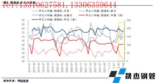 4月挖掘機(jī)出口銷量8445臺(tái),同比增長(zhǎng)64%,增幅較去年收窄,目前出口量占到挖掘機(jī)總銷量的40.95%,較去年同期增加22.03個(gè)百分點(diǎn),出口對(duì)挖掘機(jī)銷量貢獻(xiàn)明顯增加。但分析來(lái)看,未來(lái)挖掘機(jī)出口銷量增長(zhǎng)空間收窄,主要原因包括以下幾個(gè)方面:1、中國(guó)作為制造業(yè)大國(guó),在去年疫情修復(fù)后為全球工業(yè)產(chǎn)品供應(yīng)發(fā)揮了重要作用,目前全球制造業(yè)供應(yīng)鏈逐漸恢復(fù)正常,對(duì)中國(guó)進(jìn)口需求下降。2、海外市場(chǎng)需求轉(zhuǎn)弱,從小松挖掘機(jī)公布的各國(guó)挖掘機(jī)開工小時(shí)數(shù)來(lái)看,5月日本、印尼開工小時(shí)數(shù)均呈現(xiàn)環(huán)比下滑趨勢(shì),北半球開始進(jìn)入施工淡季,對(duì)挖掘機(jī)需求減弱。