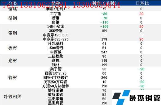 表:6月9日唐山鋼市主要品種利潤一覽(單位:元/噸)