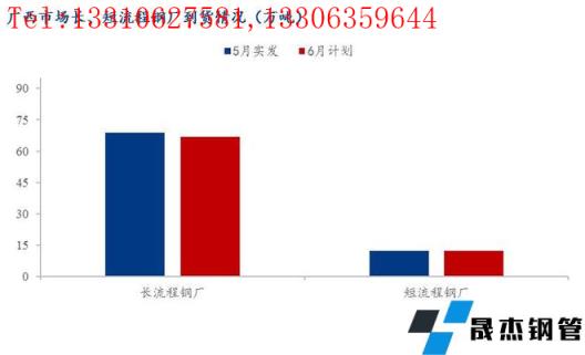 1、6月份廣西地區(qū)建筑材省內(nèi)長流程無縫厚壁鋼管廠家計劃供應(yīng)量共計66.8萬噸,環(huán)比下降2.12萬噸,降幅為3.08%;短流程無縫厚壁鋼管廠家到貨量為12.4萬噸,環(huán)比增加0.2萬噸,增幅為1.64%。