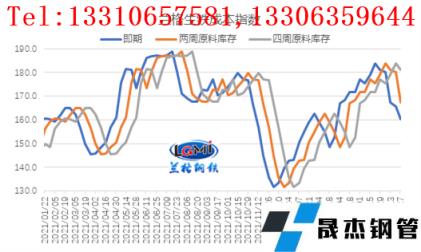 從月度均值表現(xiàn)來看,據(jù)研究中心監(jiān)測數(shù)據(jù)顯示,5月份,即期原料成本指數(shù)均值為168.4,較4月份下降6.1%;兩周原料庫存成本指數(shù)為178.0,較4月份上升1.8%;四周原料庫存成本指數(shù)為179.8,較4月份上升5.0%。同期,綜合無縫鋼管 厚壁鋼管價格指數(shù)震蕩下行,月均值為5208元/噸,較上月下降3.6%;5月份即期成本降幅大于成品材價格跌幅,因而即期鋼企盈利空間有所改善;而原料庫存周期越長成本上升幅度越明顯,因此原料庫存周期越長,盈利收縮也越嚴重。