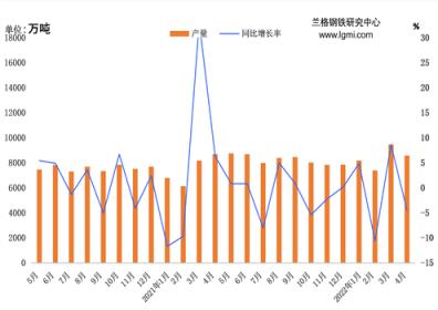 據國家統計局數據,2022年1-4月份全國鐵礦石原礦總產量為33079.4萬噸,同比下降0.9%,4月份受到疫情影響,導致國產原礦鐵礦石產量出現大幅下滑。