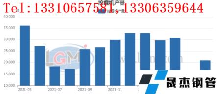 5月份國內挖掘機產量為20937臺,環比4月份減少約6956臺。同比21年同期減少約15165臺。