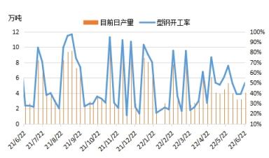 圖6 唐山型鋼開工率及日產量走勢圖