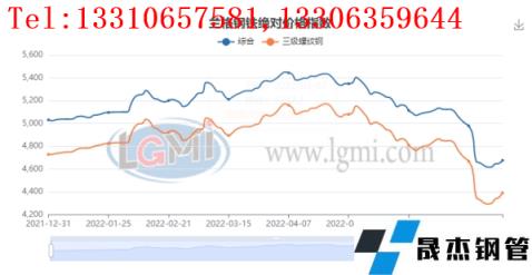 六月國內建筑厚壁鋼管市場大幅下跌,隨著進入工地的施工傳統淡季及資金回款越發困難,需求的下降開始對鋼價起明顯的壓制作用,而伴隨著美聯儲罕見加息75基點而帶來的全球動蕩,沖擊了包括鐵礦石在內的大宗商品,于是商品市場的加速下跌,也進一步刺激了現貨的下行。而后鋼企嚴重虧損開始加速出現檢修,鋼價階段筑底,并出現了一波較為微弱的反彈。