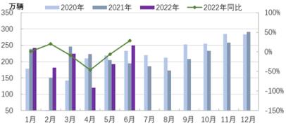 3月下旬開(kāi)始,國(guó)內(nèi)疫情沖擊超出預(yù)期,4月份汽車產(chǎn)銷量斷崖式下降,同比分別減少46.1%和47.6%,5月份疫情得到有效控制后產(chǎn)銷量恢復(fù)性增長(zhǎng),6月份汽車業(yè)供應(yīng)鏈進(jìn)一步恢復(fù),企業(yè)加快生產(chǎn),在購(gòu)置稅減半等一系列政策帶動(dòng)下,汽車消費(fèi)增長(zhǎng)動(dòng)力增強(qiáng),汽車銷量有明顯起色,當(dāng)月產(chǎn)銷量同比分別增長(zhǎng)28.2%和23.8%。