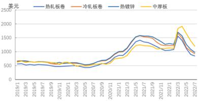 圖5 2019-2022年亞洲扁平材市場價格走勢圖