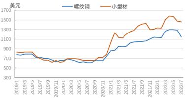 圖6 2019-2022年亞洲螺紋鋼價格走勢圖