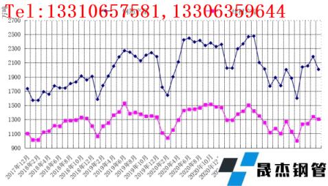 圖1 國內(nèi)建筑厚壁鋼管均價(jià)走勢圖