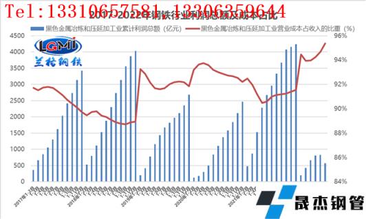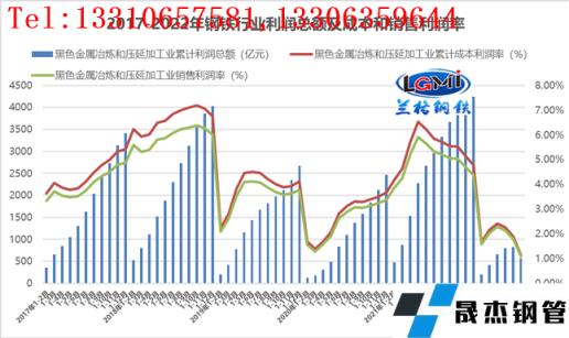 圖3 2017-2022年厚壁無(wú)縫鋼管行業(yè)利潤(rùn)總額及成本和銷(xiāo)售利潤(rùn)率