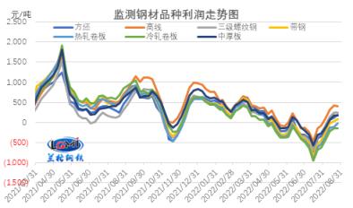 2022年8月份鋼企噸鋼毛利明顯改善
